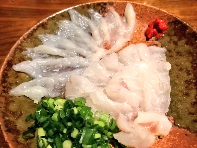 Sep 19, 17 · 実は、獲れたて新鮮なふぐは、あまり美味しくありません。 一般的に刺身とは、活きのよいさばきたてを頂くのが常ですが、天然ふぐの身は2晩寝かせたくらいが美味しさの増すおもしろJun 05, · )固く筋肉質の身はトラフグと同様に熟成が必要。1週間~10日寝かせていただく刺身はショウサイフグとはまた違った味わいだ。冬場がメインということもあって、我が家では鍋や火を使った料理でいただくことが多いな。(刺身。)アカメフグの刺身。Mar 09, 14 · 高級天然トラフグを食べる機会が訪れたときのために押さえておきたい4つのポイント! 「ポン酢」「皮」「刺身」「骨周り」 綾部綾 14年3月9日 Tweet 宴会での一品とか、居酒屋の単品料理なんかで時々目にするフグ料理。 あれってフグはフグでも