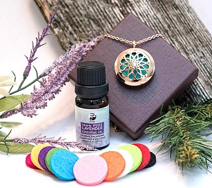 精油项链女士香薰器套装 独特玫瑰金色花设计 含薰衣草精油 与这款芳香 项链搭配使用任何精油 亚马逊中国 家居